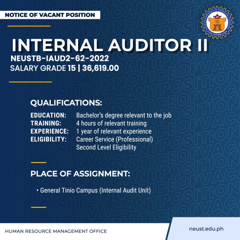 17-INTERNAL-AUDITOR-II Published August 18, 2023 at 768 × 768 in Notice of Vacant Positions ← Previous Next →