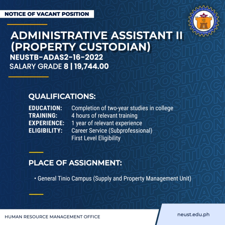 69-ADMINISTRATIVE-ASSISTANT-II Published August 18, 2023 at 768 × 768 in Notice of Vacant Positions ← Previous Next →
